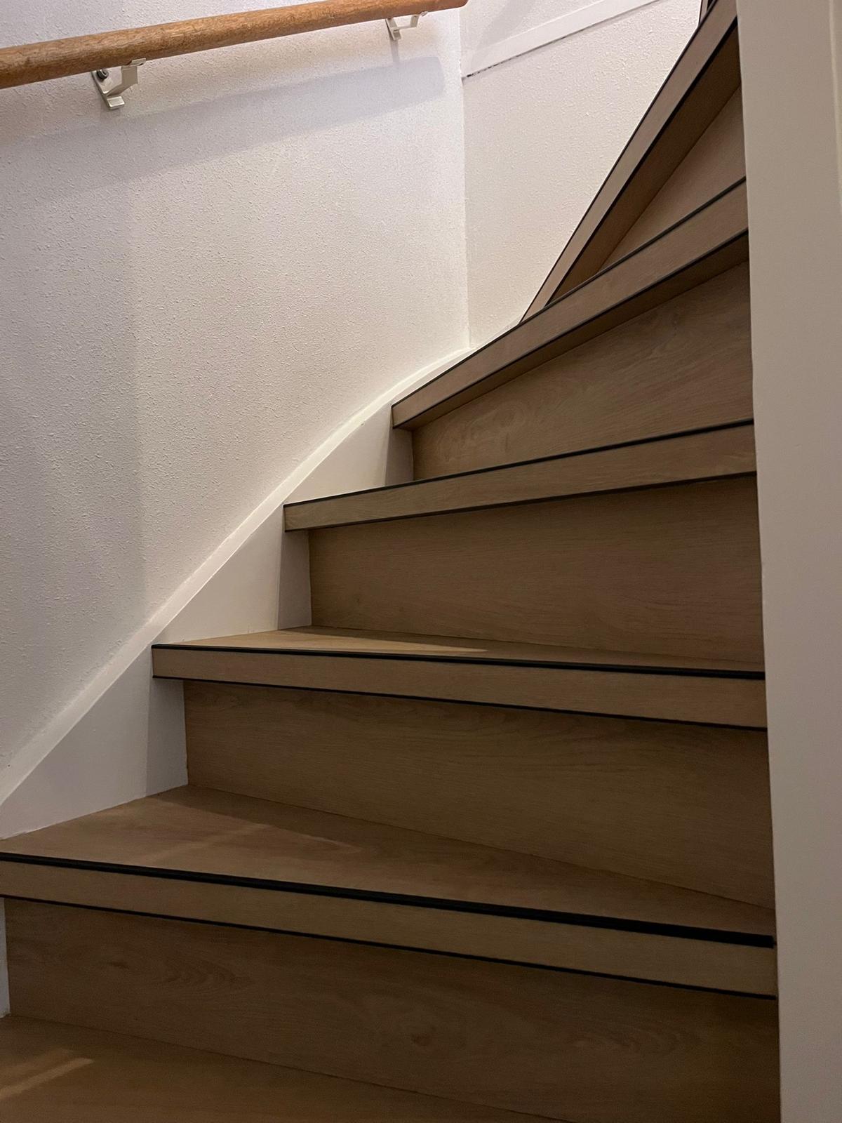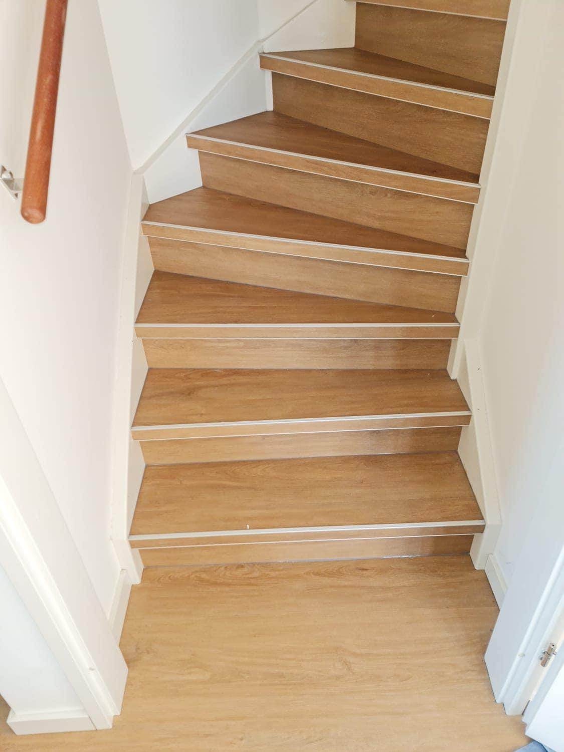 Je kunt kiezen voor traprenovatie met tredes uit één stuk, of voor vloerdelen (PVC of laminaat) in combinatie met trapneusprofielen.